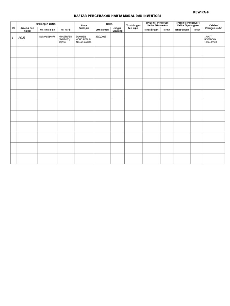 Related : Borang Kew Pa 2 - Jenis aset keterangan aset nombor siri pendaftaran kos penyelenggaraan terdahulu (jika ada) 5..