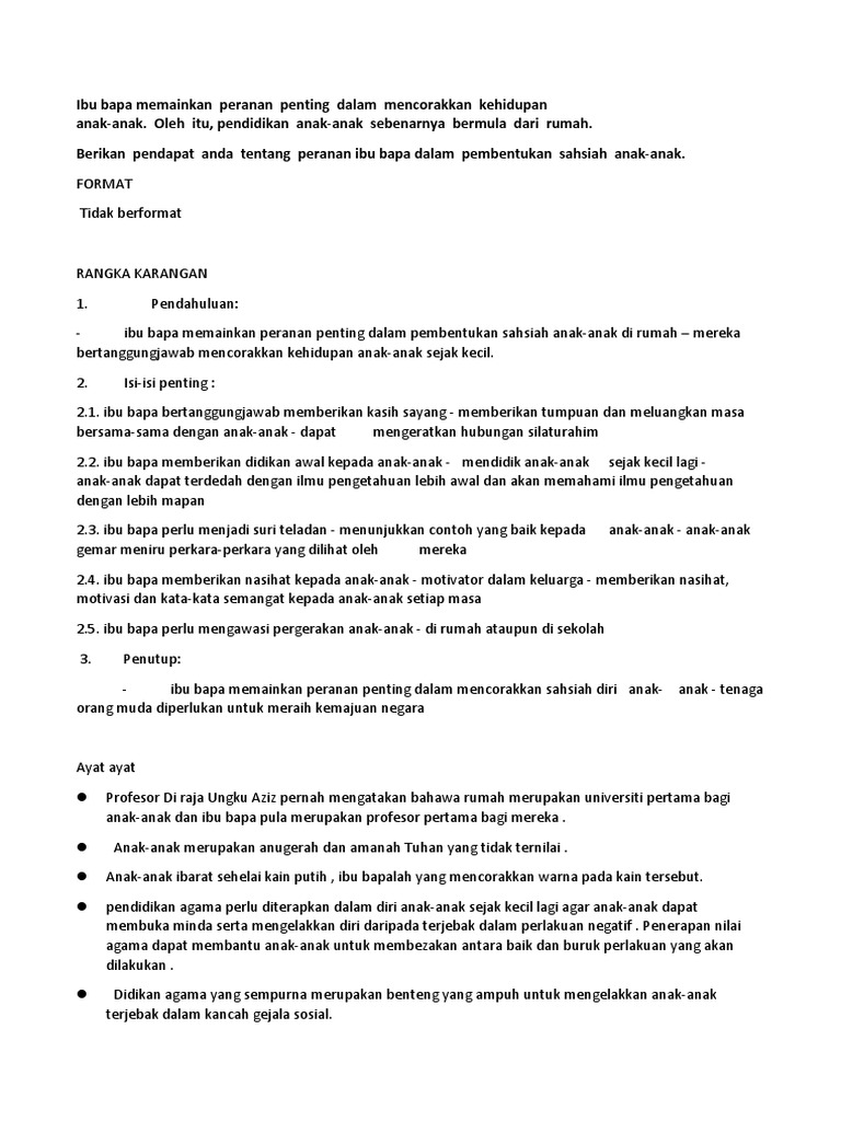 Peranan Ibu Bapa Dalam Membentuk Masyarakat from imgv2-2-f.scribdassets.com Kasih ibu bapa mari mari kita sejenak mengingat kasih ibubapa yang tiada terkira mari mari judul lagu : Semestinya, semua ibu bapa sanggup berkorban demi kebahagiaan anak mereka. Menolong orang yang tiada tahu berterima kasih. Saat kau berumur 20 tahun, dia bertanya, dari mana saja seharian ini? sebagai balasannya, kau jawab, ah ibu cerewet amat sih, ingin tahu urusan orang! Ingat tentang ini untuk mendorong kita terus menunjukkan kesopanan dan kasih sayang kepada ibu bapa kita. Daun nipah dikatakan daun labu. Kasih sayang ibu bapa amat berkesan dalam usaha untuk mendidik anak. Jika malas bertanya, tentulah peribadi anak selalu dipengaruhi oleh ibu bapa dirinya.